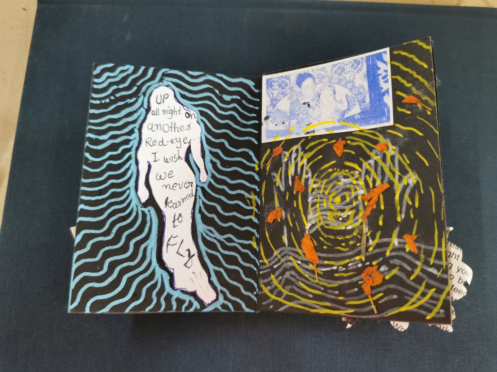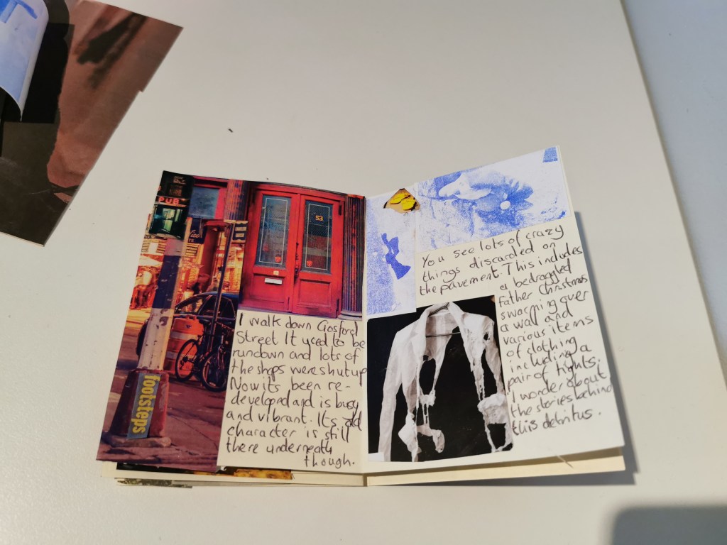 I have worked with educational and art organisations to facilitate, plan, and run workshops that explore political and personal thoughts on policy, home, migration, and identity. I’ve also run relaxed and enjoyable workshops, helping with welling and positivity with local community groups. Working with mixed age groups and abilities, to create small publications called zines, to art collages and photography work.