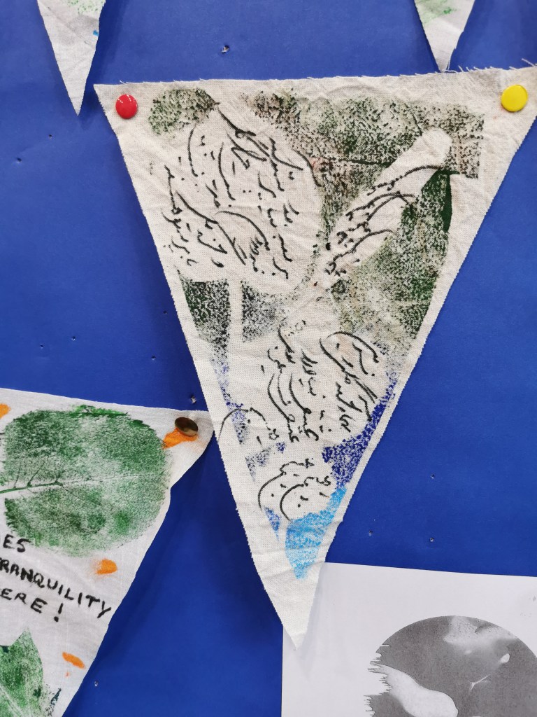 Greenway Festival, this work was created with Foleshill Creates and Foleshill Library. Printmaking and poetry.